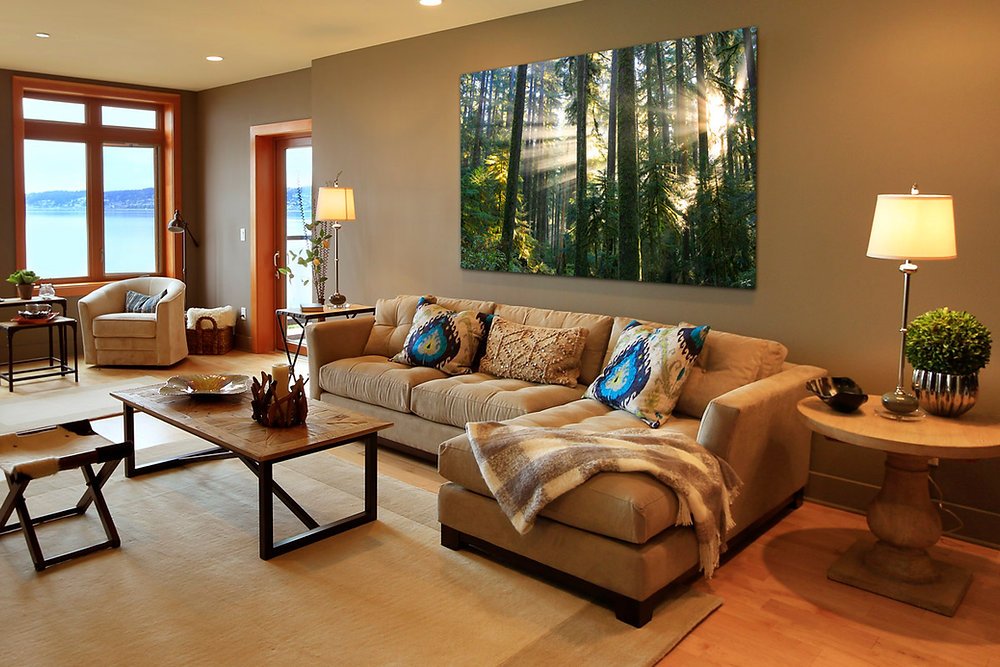 Position artwork to define and anchor conversation zones, making seating arrangements feel purposeful and encouraging face-to-face interaction rather than awkward side-by-side positioning that kills social dynamics.
