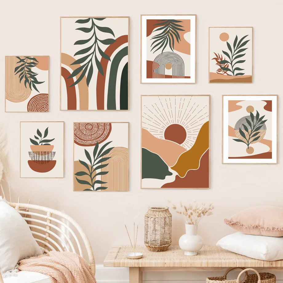 Ready to infuse your home with warm, optimistic energy? This stunning Boho Abstract Leaves Rainbow Canvas is a fantastic choice! Consequently, it features a beautiful, abstract blend of flowing leaves, a cheerful sun, and a gentle rainbow motif. It’s truly more than a picture; it’s an effortless dose of bohemian tranquility for any wall. Therefore, embrace the relaxed, artistic vibe of this modern Nordic-style artwork.