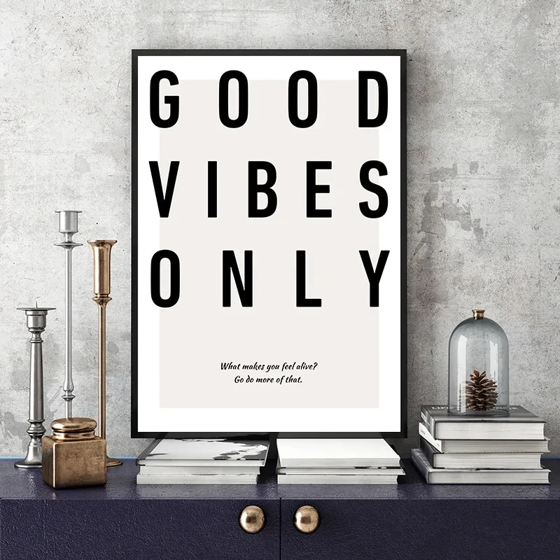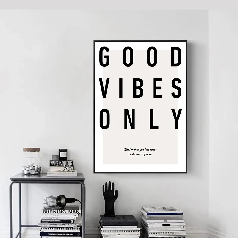 Living rooms, bedrooms, home offices, hotels, and Nordic-inspired spaces all benefit from this artwork. Specifically, it brings sophistication and calm energy to environments through understated elegance. Moreover, “Good Vibes Only” messaging reinforces positive mindsets without appearing overly casual or trendy.