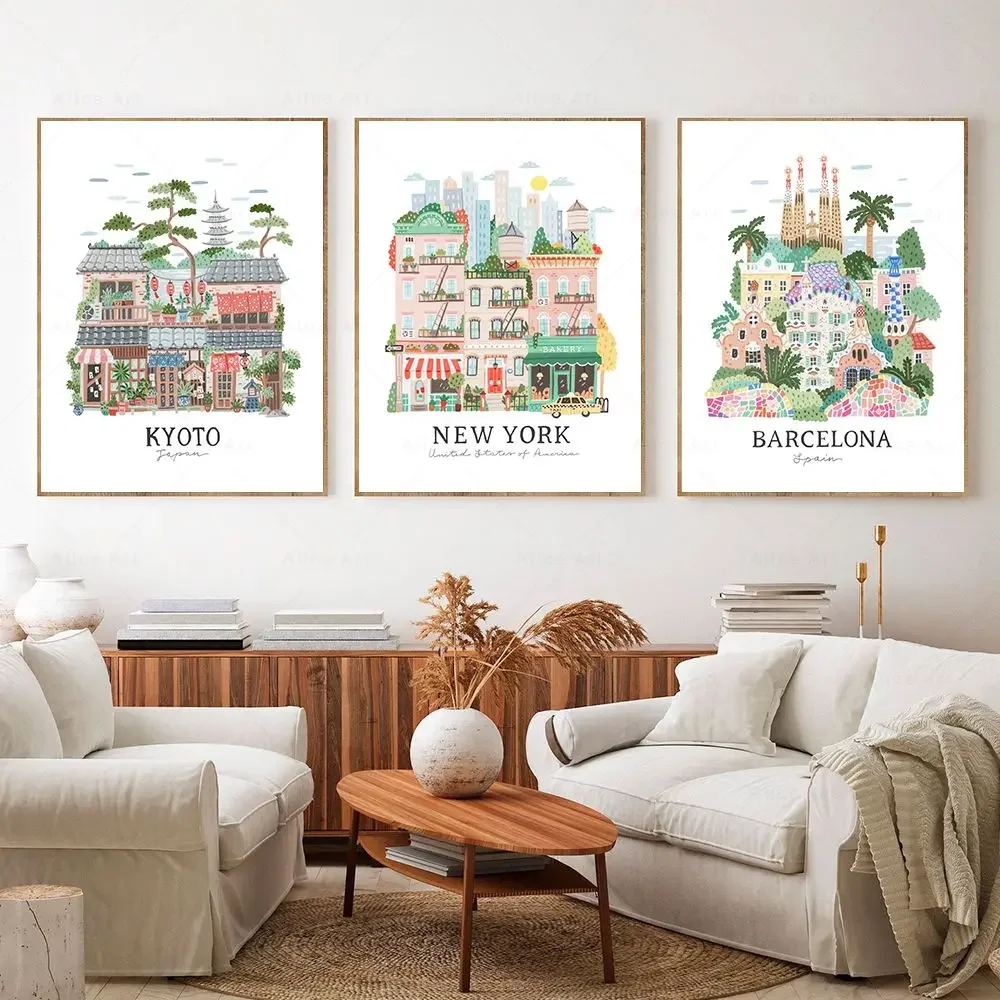 We know you want artwork that is both detailed and enduring. Since the print uses Oil as the medium and the Spray Painting technique on a sturdy CANVAS support base, the colors are rich and the details sharp. Furthermore, the high-quality materials ensure the print resists damage and maintains its beautiful finish over time. Indeed, this thickness and material ensure your canvas painting remains a beautiful piece of art. This makes the Illustration Travel City Posters Print an ideal, long-lasting item for modern homes.