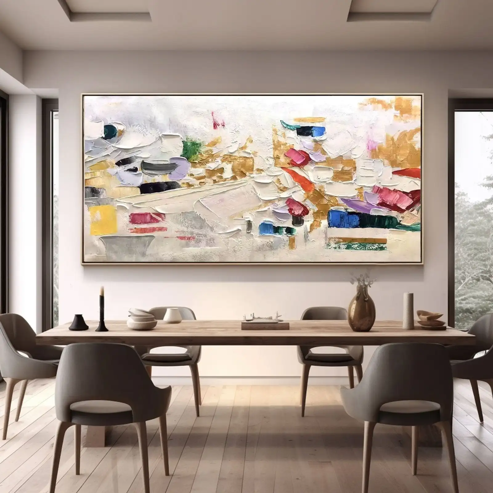 Ready to transform your main living area with a truly massive, one-of-a-kind statement piece? This captivating Large Handmade Abstract Oil Painting is a fantastic choice! Consequently, it features expressive colors and abstract shapes created entirely by an artist’s brush or knife. It’s truly more than a print; it’s an effortless piece of powerful, genuine art for your wall. Therefore, embrace the sophisticated, thick texture this Large Handmade Abstract Oil Painting provides.