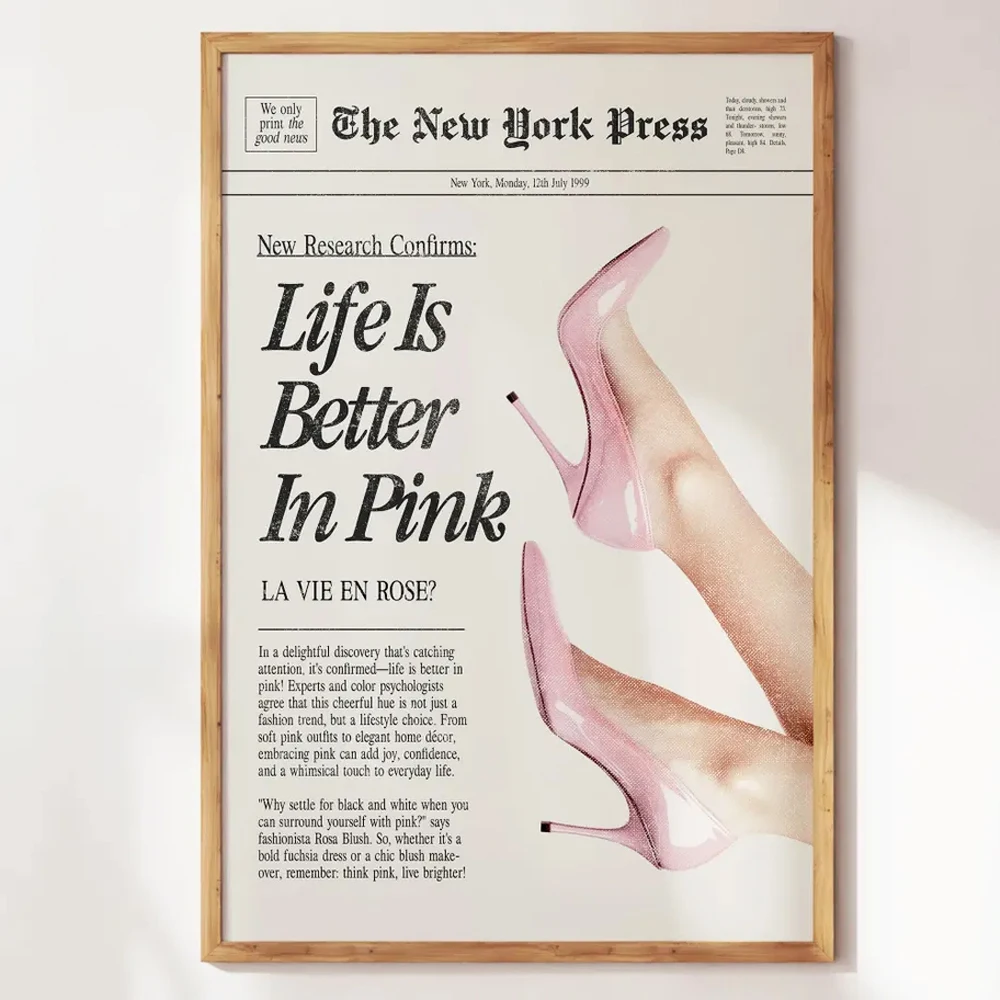 This pink poster canvas celebrates positivity through stylish typography, making it an ideal gift for optimists, design enthusiasts, or anyone who appreciates vintage-inspired décor. Transform your walls with uplifting energy and sophisticated charm that reminds you life is better in pink canvas art.