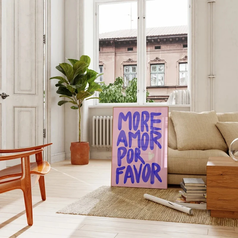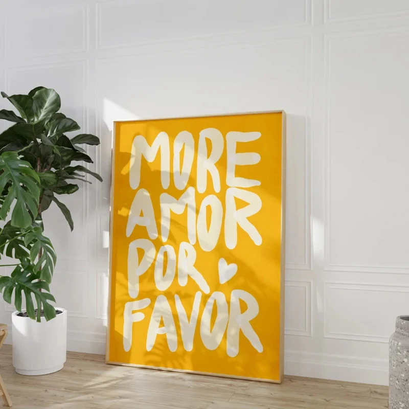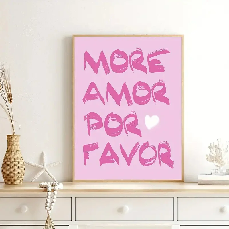 Additionally, the “amor” messaging creates romantic yet playful atmosphere in any setting beautifully. In contrast, visit vibrant wall decor for more energetic artwork options. Ultimately, this piece celebrates life’s joy through unapologetic color and design expression.