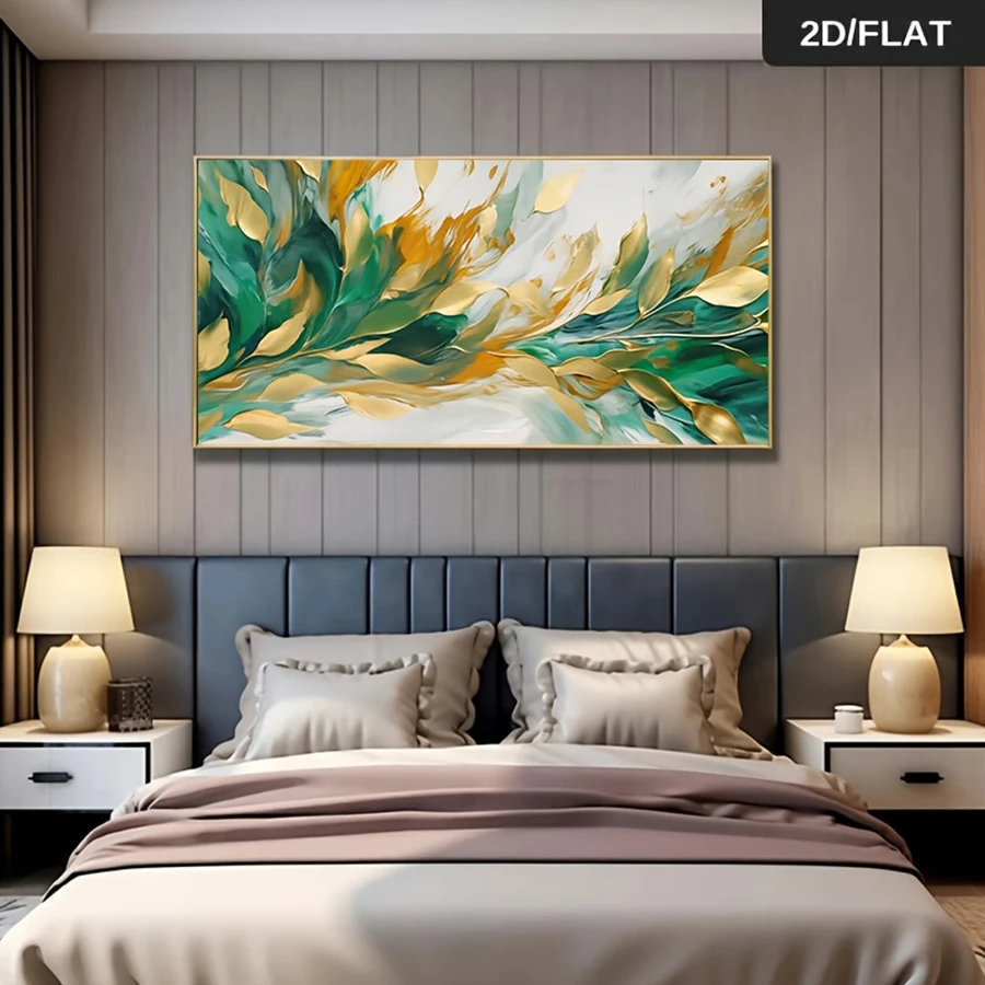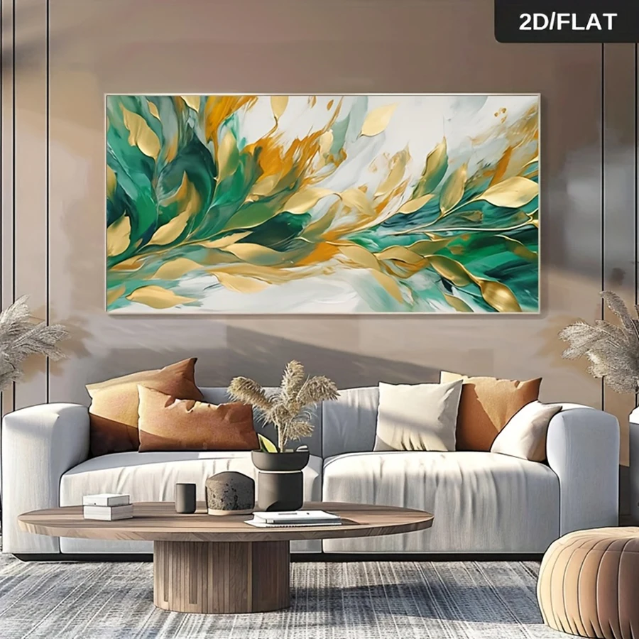 We prioritize simple, versatile decorating solutions. Because the artwork comes Unframed and rolled in a tube, you have the freedom to select a custom frame later if you choose. Alternatively, you can hang the canvas as is for a sleek, borderless, modern look. Moreover, the Horizontal Rectangle shape is perfect for placing above a bed or a sofa. This captivating Nordic Green Golden Leaf Art is an easy way to update any space with an upscale feel.