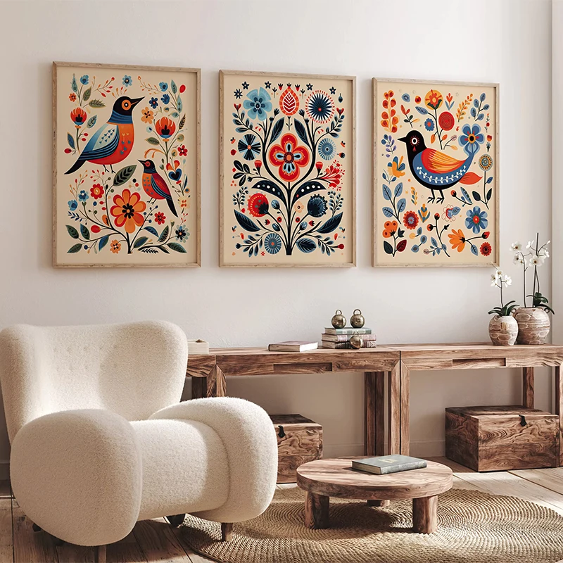 We’ve kept decorating simple and flexible for you. Because the artwork comes Unframed, you have the freedom to select a frame that perfectly complements your furniture. Alternatively, you can hang the canvas as is for a classic, borderless look. Moreover, the Vertical Rectangle shape fits beautifully in narrow spaces or as a striking accent piece. This beautiful Norwegian Folk Art Bird Canvas easily updates any modern or rustic space with a story.