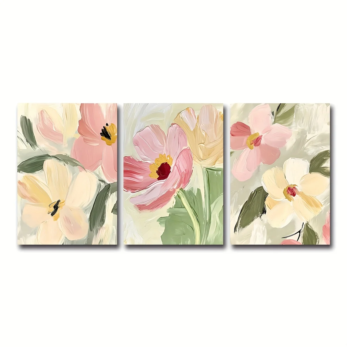 We’ve kept decorating simple and versatile for you. Because the prints come Unframed, you have the creative freedom to select frames that perfectly suit your individual style. Alternatively, you can hang the canvases as is for a clean, borderless, modern look. Moreover, the three-picture combination offers great flexibility for arrangement. This beautiful Pastel Abstract Wildflower Canvas Set is an easy way to achieve a cohesive and serene look for your home decor.